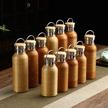 Grande capacità in acciaio inox bottiglia di acqua calda in bambù cinese tessuto isolato tazza portatile a portata di mano viaggio moderno campeggio all'aperto