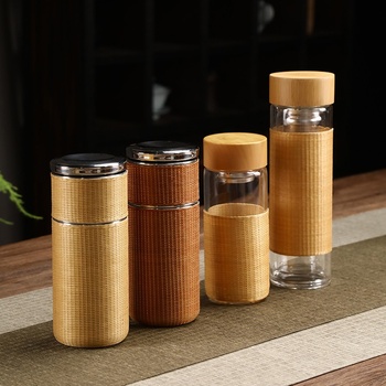 Grande capacità stile cinese portatile in acciaio inox Tumbler tessuto di bambù isolato tazza per acqua calda vuoto viaggio Thermos per