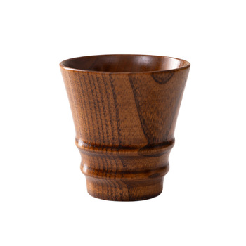 ดรอปชิปถ้วยไม้สไตล์ญี่ปุ่นคลาสสิกด้ามจับไม้คลาสสิกสลักโลโก้ยางสำหรับน้ำชาน้ำนมใช้ในครัวเรือน