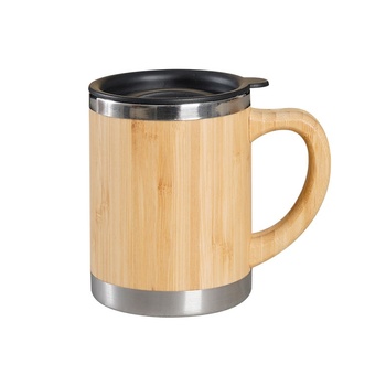 Fabrika doğrudan tedarik paslanmaz çelik bambu kabuk vakum termos fincan taşınabilir araba kahve fincanı ofis iş hediyeler için kolu